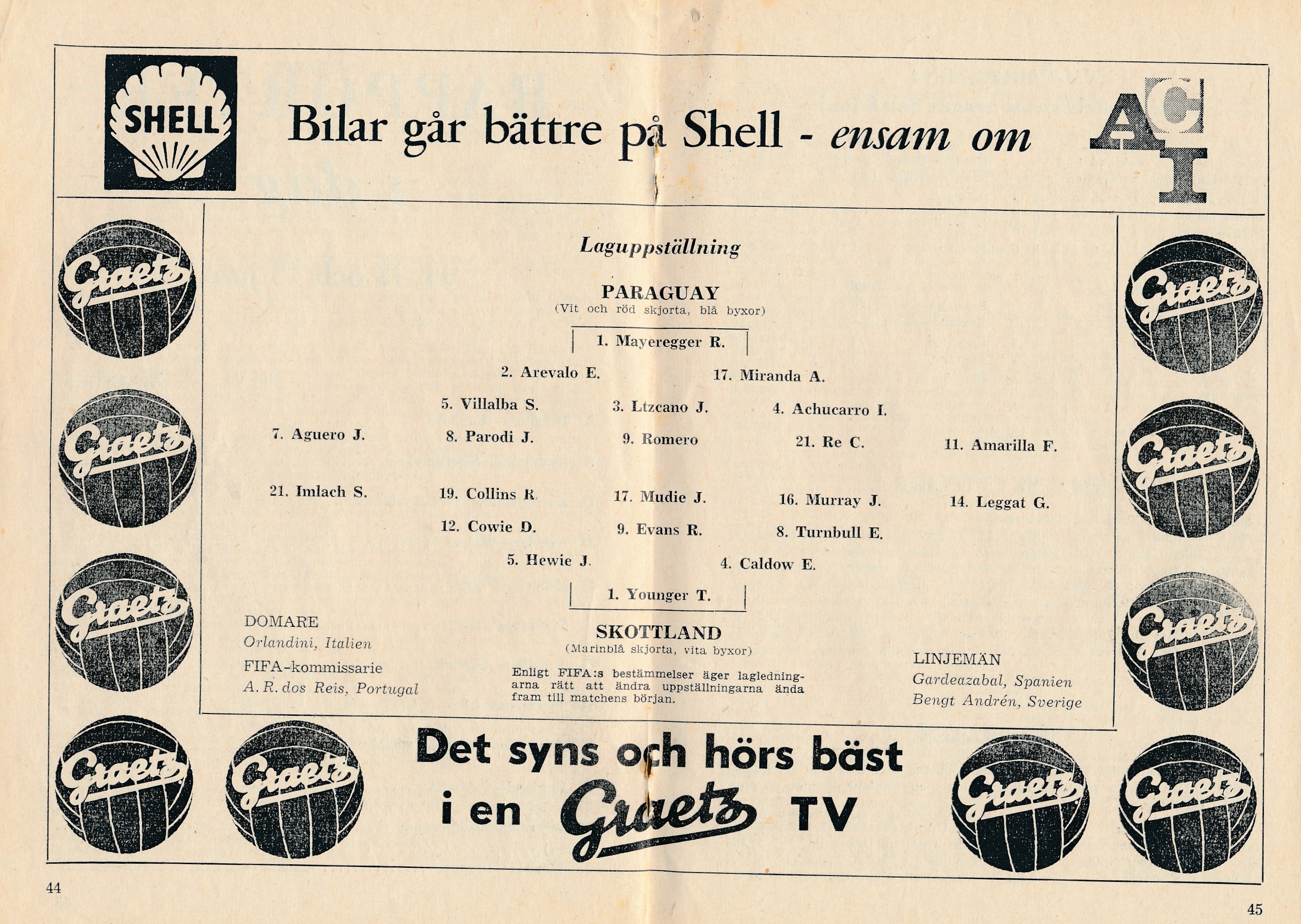 VM Program 1958 Paraguay-Skottland