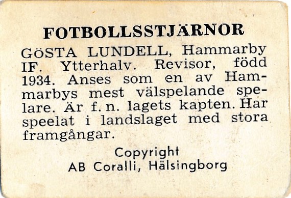 Gösta Lundell är ett namn som fortfarande hålls högt bland Hammarbys supportrar. Han tillhör den generation som byggde klubbens identitet – tystlåten men tydlig, teknisk men hårt arbetande, och alltid trogen den grönvita tröjan. Källa: AI