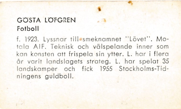 Gösta Löfgren föddes den 29 augusti 1923 och dog den 5 september 2006. Löfgren var en svensk fotbollsspelare som spelade den största delen av sin karriär i Motala AIF. Han debuterade i landslaget 1951 och deltog vid OS 1952 (brons). Han spelade i Allsvenskan först efter att ha bidragit till att föra upp Motala AIF till dess första och hittills enda säsong i högsta serien (den så kallade Mammutserien 1957-58).