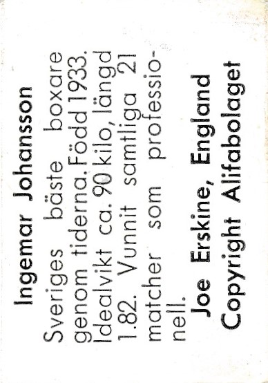 Intresset för boxning fick Ingemar Johansson då han på vinter/våren 1945 såg en boxningsmatch i Mässhallen: "Jag stod överst i Mässhallen, såg ned i ringen och häpnade att folk var så tagna. De skrek som tokiga och jag förstod inte vad det var, som engagerade dem så våldsamt. Men skådespelet fångade mig, publikens rop fick samband med slagväxlingarna. Plötsligt stod det klart för mig, att jag hade lust att bli en av figurerna i ljusvalvet under lamporna. Hjärtat började banka i mig, när jag upptäckte, att jag ville bli boxare."