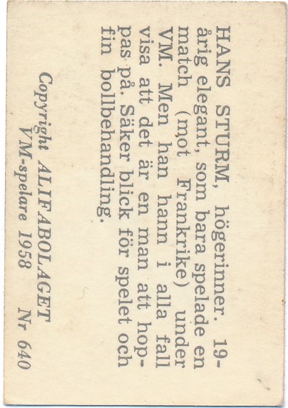 Hans Sturm föddes den 3 september 1935 och dog den 24 juni 2007. Sturm var en tysk fotbollsspelare. Han föddes i Schönau an der Katzbach , Nedre Schlesien och dog i Köln.
