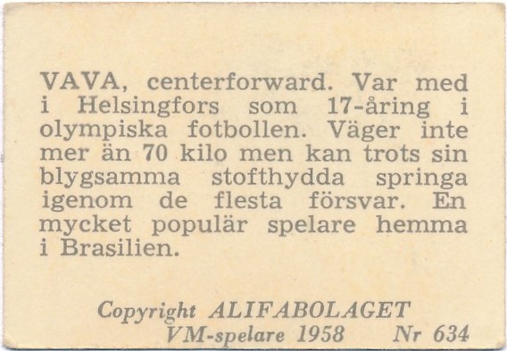 Edvaldo Izidio Neto, mer känd som Vavá, född 12 november 1934 i Recife, Brasilien och död 19 januari 2002 i Rio de Janeiro, Brasilien var en brasiliansk fotbollsspelare (anfallare), mest känd som center i det landslag som 1958 vann VM i Sverige. (Youtube)