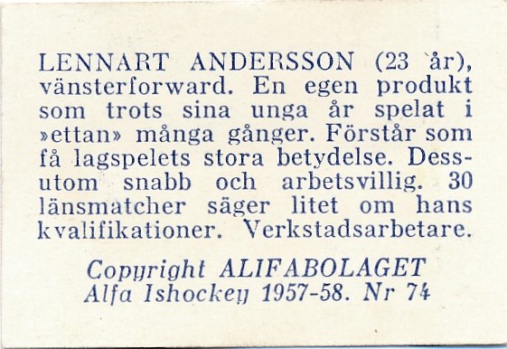 74# Lennart Andersson. Wifsta-Östrand IF.
