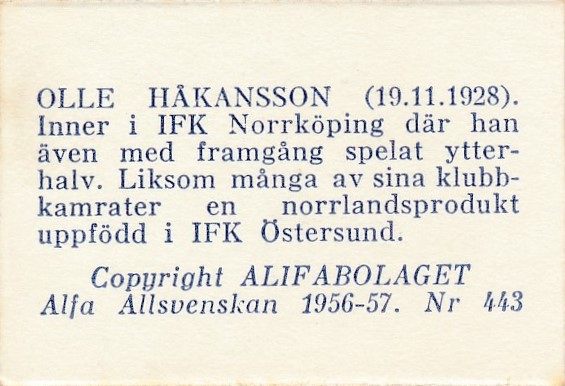 Utanför planen arbetade han som bilelektriker, och enligt IFK Norrköping var han en person med stor integritet – inte en man av stora ord, men en spelare som alltid satte laget främst. I en era av ödmjuka hjältar var Olle Håkansson kanske just det: en tyst men tydlig hjälte, som i högsta grad bidrog till klubbens gyllene era. Källa: AI