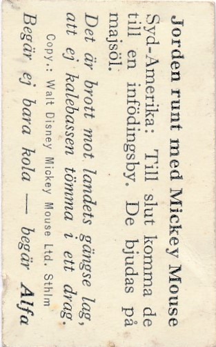 Alfa Bobbykola svenska Disney-serien 1935 med titeln ′′ Jorden runt med Mickey Mouse ′′ serien består av 150st kort.